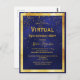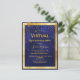 Na frente: uma placa de convite de aniversário virtual moderna, moderna, 50ª (ou qualquer idade) para homens. Um fundo azul escuro, azul marinho. A cor azul é irregular. Com um falso quadro de ouro e um confete de ouro, letras coloridas de ouro. Personalize e adicione um nome, a idade e as informações da sua festa. Traseira: design de cartão postal comum.