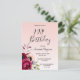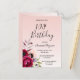 À frente: Um convite moderno e elegante para uma festa de aniversário. Um fundo de rosa ouro-luz. Decorado com flores roxas escuras e arrojadas e rosa cor-de-rosa. Modelos para um nome, data e local da parte. O texto: 100.º Aniversário e o nome é escrito com um script de estilo muito extenso, letras negras. Fundo: fundo rosa dourado colorido.