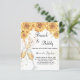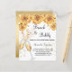 Um convite moderno, na moda e glamouroso para um Chá de panela de bolinho. Um fundo branco com bolhas, um par de flautas, óculos e rosas, florais. O nome é escrito com um moderno estilo escrito à mão. Personalize e adicione os detalhes da sua festa. Fundo de ouro falso com bolhas