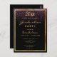 Um cartão de convite feminino e chic para uma festa de formatura 20xx. Glamorosa com elegante e moderno fundo negro e chuva roxa e cor-de-rosa confetti. Modelo para detalhes de nome e festa. O texto Graduação e o nome são escritos com um script de estilo manuscrito moderno. Ouros. Traseiro: cor preta do fundo. Este cartão também está disponível em nossa loja sem cor de fundo no verso.
