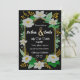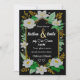 Enquanto flores e ouro com convite elegante para casamento.