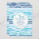Um delicioso padrão de linhas horizontais de blues com branco com um decal de centro redondo que mantém os detalhes do seu partido. Perfeito para as comemorações do verão. <a href="http://www.freepik.com/free-vector/watercolor-abstract-summer-pattern-background_1196817.htm">Projetado por Freepik</a>). <br/>() A placa é fácil de personalizar com seu texto, fonte, cor da fonte, opções de forma de papel e escolha de seis tipos de papel.<br/>() Não exatamente o que você está procurando? Todos os nossos produtos podem ser personalizados para atender às suas necessidades sem custo extra.<br/>() Basta entrar em contato conosco em askcottonlamb@gmail.com.<br/>() Coordenar os produtos disponíveis: Apenas nos pergunte!