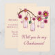 Planejando um casamento? Você precisa de suas amigas para segurar sua mão, ajudar a organizar e fazer você ficar perfeita no seu dia especial. Pedir em casamento fica fácil com este convite de padrinha. Personalize o cartão alterando o texto nos campos fornecidos. Você pode alterar o estilo da fonte, tamanho e cor, tipo e estilo de papel, bem como alterar a cor do fundo.