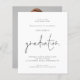 Um valor para o alternativo do ORÇAMENTO em tamanho menor de 4,5 x 5,6" de semirbrilho de 110 lbs, que é de espessura semelhante a um cartão postal (no entanto, não é adequado para uso como cartão postal). POR FAVOR, OBSERVE QUE HÁ UM convite por folha. Um simples design de tipografia informal em preto e branco com graduação em um roteiro elegante, e sua foto de formando no verso. Personalize facilmente o resto do texto e substitua a foto do exemplo no verso por sua.