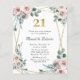 Aniversário de 21 anos de Orçamento Rosa Floral Eucalyptus Dourado Convite de festas Dusty.. Nosso convite de festas aniversário de 21 anos de estilo barato do do apresenta rosas cor-de-rosa empoeiradas e arranjos verdes de eucalipto em uma estrutura geométrica de folha metálica dourada que faz fronteira com seu texto de convite personalizado. Acima do texto do convite está um gráfico dourado número 21 que adiciona ao toque luxuoso deste convite de festa de aniversário único. A parte traseira da carta é um delicado rosa-pincelado encontrado dentro dos próprios rosas. Todo o texto (exceto o gráfico de texto "21") pode ser facilmente revisado com seus próprios detalhes no modelo de personalização.