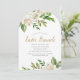 Convites de brunch de Páscoa com impressão personalizada de barato com uma elegante borda floral pintada com sotaques de folha de ouro brancos, verdes e falsos. Personalize o modelo com os detalhes do evento ou use as ferramentas de design para personalizar o texto, escolha qualquer cor de fundo e edite as fontes para criar seu design exclusivo de convite de festas de Páscoa. O verso apresenta um fundo verde bonito ou usa o espaço para adicionar texto ou fotos, se necessário. Este lindo design floral neutro é perfeito para o primavera.