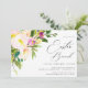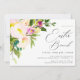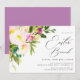 Flores botânicas de cor d'água pastel elegantes e armação verde de jardim, convite a Páscoa Brunch. A parte traseira da placa coordena a cor roxa sólida.