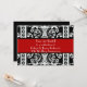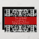 Lindo estilo Art Deco Convite, com elegante design barroco preto e branco, no topo e no fundo, e uma risca vermelha corajosa, no meio. O texto branco, na faixa vermelha e no fundo preto sólido, está pronto para personalizar o seu evento especial.