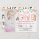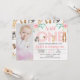 O convite de aniversário de animais da floresta desta menina apresenta quatro animais bonitos, um porco-espinho, urso, guaxinim e coelho. Acrescentei a palavra um ao design e alguns arranjos florais, na sua maioria cor-de-água rosa, nos cantos superiores do convite. O plano de fundo é uma imagem de papel de aquarela digitalizada. A foto da sua garotinha aparece no lado esquerdo do convite. Eu incluí um padrão de animais de floresta no final do convite. Eu queria criar alguns novos animais da floresta nos primeiros convites para a loja porque é um tema popular. Esta design também está disponível sem uma fotografia. O convite a primeiros aniversarios de animais da floresta fotográfica desta menina está pronto para ser personalizado.