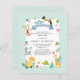 Os animais cártaros-da-selva têm um convite de aniversário que inclui animais tropicais, uma ave exótica e outros elementos festivos bonitinhos. Envie os convites e comemore o primeiro aniversário do selvagem com amigos e familiares. Planeje uma festa que todos se lembrarão por anos para começar com esta primeira festa de aniversário editável: