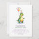 Celebre o seu grande marco com este adorável convite para primeiros aniversarios de dinossauros! Apresentando um dino verde alegre segurando um balão e vestindo um chapéu de festa, esta design é perfeita para a festa de aniversário de um menino que ama dino. Completamente personalizável com os detalhes de sua festa, é uma maneira divertida e divertida de convidar família e amigos para uma celebração ruidosa! Excelente para temas de festas de aniversário com temática de dinossauros ou neutros.