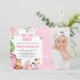Fazenda cor-de-rosa primeiro aniversario Fotográfico Convite fazenda floral cor-de-rosa doce Primeiro convite de aniversário com um grande número, alguns arranjos florais cor-de-rosa, celeiro cor-de-rosa e três animais quentes. Este primeiro convite de aniversário da fazenda é uma maneira adorável de convidar convidados para uma primeira festa de aniversário temática.