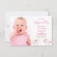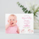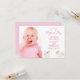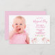 Na frente: Um convite de festas primeiro aniversario para uma menina. Dois unicórnios bonitos em branco e rosa com estrelas e bandeiras de bunting. Fundo branco. Insira sua foto da aniversariante! Modelos para nome, idade e detalhes da festa. Com o texto: Dia Mágico escrito com uma escrita de estilo moderna, escrita à mão. Letras cor-de-rosa. Fundo: fundo cor-de-rosa claro pastel.