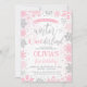 Celebre o seu primeiro aniversario com estes convites para os temas da Terra da Onederland de inverno, sempre fofos! Esse design colorido apresenta flocos de neve pastel e texto com um pouco de prata brilhante.