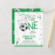 Celebre o primeiro aniversario do seu novato com o Convite para primeiro aniversario de Orçamento do Soccer da Pequena Rookie. Este cartão de convite vibrante e econômico apresenta adoráveis decorações de futebol, esquema de cores preto e verde, confetti que energiza a atmosfera e um megafone que adiciona entusiasmo. Este convite de aniversário atraente e engajador é perfeito para os pais que querem um barato, mas memorável, para o primeiro marco do seu filho. Prepare-se para se divertir e criar memórias duradouras com este convite de aniversário.