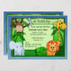 Macaco bonito e colorido, elefante, leão e girafa são convites de aniversário para o primeiro aniversário do seu filho. Personalize o texto com seus detalhes pessoais. Disponível também em outras idades.