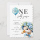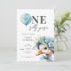 a história de um marco alegre, muito primeiro aniversário, uma celebração envolta em amor, calor e um toque de capricho. A design centra-se num ganso encantador, carinhosamente ilustrado como se fosse arrancado das páginas de um livro infantil amado. Ele não é qualquer ganso—Ele é "um ganso bobo", vestido para uma festa de chapéu listrado e coroa floral, orgulhosamente segurando um balão azul. Sua expressão é de olhos largos, inocentes e cheio de personalidade — como uma criança de um ano descobrindo o mundo.
