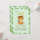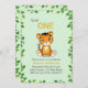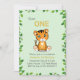 Cartão de convite para um primeiro aniversario de tigre selvagem. Todo texto pronto para ser personalizado.