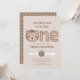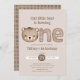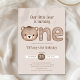 Celebre o seu primeiro aniversário com este adorável convite para os ursos. Apresentando um rosto de ursinho de pelúcia desenhado à mão, tons castanhos aconchegantes e uma letra divertida de "UM", esta design é perfeita para um tema neutro, de floresta ou de festa rústica. Personalize com o nome, a data e os detalhes da festa do seu filho. Uma escolha doce e eterno para rapazes, raparigas ou celebrações neutras em termos de gênero.