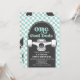 Skateboard Um Homem Legal, primeiro aniversario convidado com cheque azul e skate.