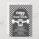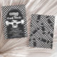 Skateboard Um Homem Legal, primeiro aniversario convidado com cheque preto e skate.