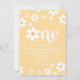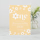 yellow Retro inspirou o convite de 1rua de aniversário com margaridas de estilo 70 e fontes e cores de vô.