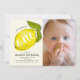 Este primeiro convite de aniversário bonito e moderno apresenta uma foto-retrato e um grande fundo amarelo-limão com bolinhas amarela-limão clara. O verso apresenta fundo de bolinhas amarelo-limão. Perfeito para a primeira ou qualquer festa de aniversário, festas de blocos, festas de formatura e festas de limpeza doméstica. Personalize-o para as suas necessidades. Você pode encontrar produtos correspondentes na minha loja.