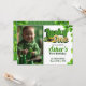 Design de trevo verde e dourado de 4 folhas que pode ser personalizado com a foto da criança.