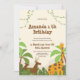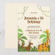 Celebre o seu primeiro aniversário com este adorável convite do safari da selva! Apresentando animais bonitos como uma girafa e cervo entre os verdes tropicais, é perfeito para uma festa selvagem e divertida. Personalize com os detalhes do seu partido.
