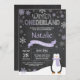 Convite para primeiro aniversario de Winter Onederland. Pinguim. Lavanda Lilac Roxo e Floco de Neve Branco. Primeiro aniversário. Garota 1rua de Dia Convidam. Fundo do quadro.Preto & Branco. Para mais personalização, clique no botão "Personalizar" e use a ferramenta design para modificar este modelo.