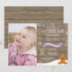 Rustic Winter Onederland Snowman primeiro aniversario Convite com fotografia personalizada. Gingerpão. Lavanda Lilac Roxo e Floco de Neve Branco. Primeiro Aniversário. Garota 1rua no Bairro Convidam. Fundo Rustic Wood. Para mais personalização, clique no botão "Personalizar" e use nossa ferramenta de design para modificar este modelo.
