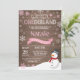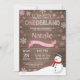 Rustic Winter Onederland primeiro aniversario Invitation. Homem de neve. Floco de neve rosa e branco. Primeiro Aniversário. Garota 1rua no Bairro Convidam. Fundo Rustic Wood. Preto & Branco. Para mais personalização, clique no botão "Personalizar" e use nossa ferramenta de design para modificar este modelo.