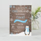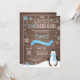 Rustic Winter Onederland primeiro aniversario Invitation. Pinguim. Floco de neve azul e branco. Primeiro Aniversário. Convidado para rua. Fundo Rustic Wood. Preto & Branco. Para mais personalização, clique no botão "Personalizar" e use nossa ferramenta de design para modificar este modelo.