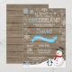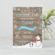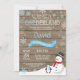 Rustic Winter Onederland primeiro aniversario Invitation. Snowman e Penguin. Floco de neve azul e branco. Primeiro aniversário. Convidado para rua. Fundo Rustic Wood. Preto & Branco. Para mais personalização, clique no botão "Personalizar" e use nossa ferramenta de design para modificar este modelo.