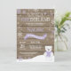 Convite para primeiro aniversario de Urso Polar de inverno Russo Onederland. Veado. Lavanda Lilac Roxo e Floco de Neve Branco. Primeiro Aniversário. Garota 1rua no Bairro Convidam. Fundo Rustic Wood. Para mais personalização, clique no botão "Personalizar" e use nossa ferramenta de design para modificar este modelo.