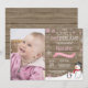 Convite para primeiro aniversario Rustic Winter Onederland com foto personalizada. Snowman e Penguin. Floco de neve rosa e branco. Primeiro Aniversário. Garota 1rua no Bairro Convidam. Fundo Rustic Wood. Para mais personalização, clique no botão "Personalizar" e use nossa ferramenta de design para modificar este modelo.