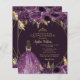 Orçamento Elegante Purple Dourada Princesa Floral Quinceañera Quince Convite