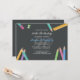 Um quadro, lápis coloridos, um apontador de lápis e um governante adoram o convite de aniversário deste professor. Mude o ano de fundo para refletir o ano de aniversário que você está celebrando.