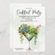 Convite de Festa de Coquetel com Aquarela de Martini e Folhas de Cactos Suculentas Bebidas Álcool Festa de Verde Plantas Aniversário Chá de Noiva Noivado Jantar Inauguração de Casa Nova Casa Convite para Amante de Plantas