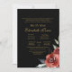 Forno vermelho preto Convite para quinceanera, Invitación fondo negro con flor roja para Quinceañera