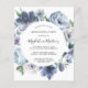 Os peões azuis empoeirados formam um quadro redondo em torno de seus detalhes de festa de aniversário neste elegante convite orçamentário.