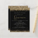 Um valor para o alternativo do ORÇAMENTO em tamanho menor de 4,5 x 5,6" de semirbrilho de 110 lbs, que é de espessura semelhante a um cartão postal (no entanto, não é adequado para uso como cartão postal). POR FAVOR, OBSERVE QUE HÁ UM convite por folha. Dourado convite à Quinceanera Negra. As bordas de confete de falso ouro elegantes estão no topo e no fundo e também no verso. Quinceañera é feita no estilo moderno da caligrafia. Personalize facilmente o resto do texto para você.