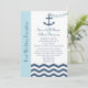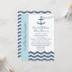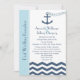 Este convite de recepção pós-casamento tem um tema náutico e apresenta as palavras "Recepção Pós-Casamento" à esquerda em uma faixa azul clara, mas o ponto focal do design é uma âncora com uma corrente em forma de coração sendo lançada em um mar xadrez ou ziguezagueante. Você pode personalizar o convite com o nome da noiva e do noivo, a data e local do casamento e todos os detalhes do seu convite de recepção pós-casamento. Copyright henishouseofpaper