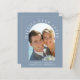 Elegante e orçamental, elopeia azul empoeirada ou anúncio privado de casamento e convite de recepção. A frente mostra sua foto do dia de casamento em um quadro de arco e "Feliz Sempre Depois" em uma elegante tipografia branca. Adicione seus primeiros nomes, data do casamento e local. Ao contrário, personalize seu anúncio e convite e adicione seus nomes em um script semelhante a assinatura.