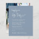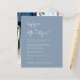 Um elopemento azul empoeirado, amigável em orçamento, ou anúncio privado de casamento e convite de recepção de casamento com a apresentação "Feliz Nunca Depois da Festa" em um roteiro branco moderno, seu convite na tipografia serif branca clássica e seus nomes em um roteiro semelhante a assinatura. O verso mostra sua foto, nomes e datas de casamento e recepção.