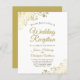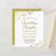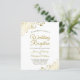 Estes convites, baratos e favoráveis ao orçamento, destinam-se a convidados que são convidados para a recepção de casamento, mas não para a cerimônia. O design apresenta um fundo branco com ornamentados dourados nos cantos. A tipografia inclui a inscrição em rico para um estilo simples e elegante. Escolha perfeita para elegância, classe, estilo e beleza em um orçamento.