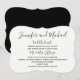 Este divertido convite para recepção de casamento apresenta uma fonte preta alegre com seus nomes seguidos por "casaram-se" em um convite de suporte branco. Você pode personalizar onde foi casado seguido por seu Sr. e Sra. e então todos os detalhes da sua recepção de casamento! O verso do convite é preto para um simples, mas elegante convite de casamento. Copyright henishouseofpaper