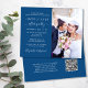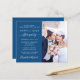O clássico elopemento azul chic e econômico / anúncio privado de casamento e convite de recepção apresentando sua foto e "Felizmente Nunca Depois da Festa" em uma mistura de tipografia branca moderna e um roteiro branco na moda com pestanas. Personalize seus detalhes de festa ou recepção e adicione seus nomes em um script semelhante a assinatura. No verso, insira o endereço de URL do seu site de casamento para gerar um código QR que seus convidados podem digitalizar para RSVP on-line.