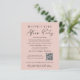 Anúncio de elopemento cor-de-rosa com baixo orçamento e convite de recepção de casamento. "Feliz Festa Nunca Depois" é escrito em uma simples tipografia e uma escrita na moda moderna. Personalize seu anúncio e convite e adicione seus nomes em um script semelhante a assinatura. Introduza o endereço URL do Web site do casamento para criar um código QR para os convidados a pesquisar todos os detalhes e para RSVP online. O verso mostra sua foto favorita do casamento, seus nomes e data do casamento.