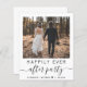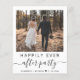 Eleição orçamental ou anúncio privado de casamento e convite para recepções de casamento. A frente apresenta sua foto, "Felizmente, nunca depois da festa" em uma mistura de simples tipografia e um roteiro de chic com sucos e seus primeiros nomes e data de casamento ou recepção unidos por um coração. No verso, introduza o endereço do Web site do casamento para criar um código QR para os convidados a digitalizar para ver as suas fotografias de casamento, todos os detalhes e para RSVP online, e adicione os seus nomes num script semelhante a assinatura. Este papel semirbrilhante do orçamento é semelhante em peso ao papel fotográfico. Também está disponível uma versão maior do estoque de cartão tradicional 5x7 (mensagem para o link).